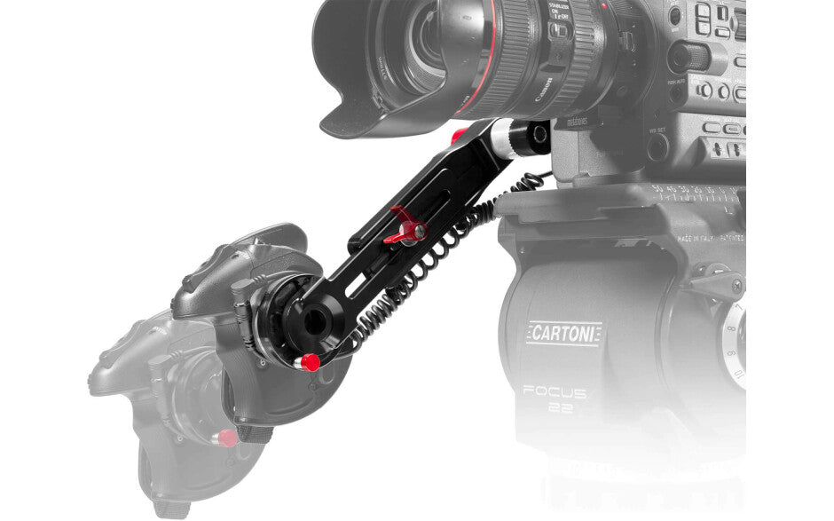Compact pour le stockage et le voyage, le bras ne mesure que 14cm lorsqu’il est plié. Il peut être étendu à une longueur maximale de 28cm lors de son utilisation. L’extension se monte facilement sur la FX6 à l’aide d’une rosette de style ARRI (non inclus) ainsi que d’une vis knob d’un côté et d’une connexion de poignée Sony native de l’autre.